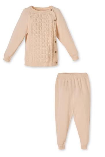 Bej Organik Pamuklu Örgü Desenli İkili Triko Erkek Çocuk Takımı