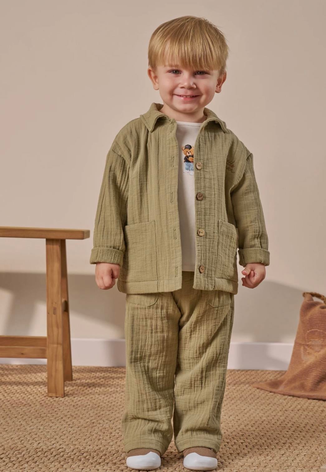Erkek Bebek Müslin 3lü Takım - Yeşil
