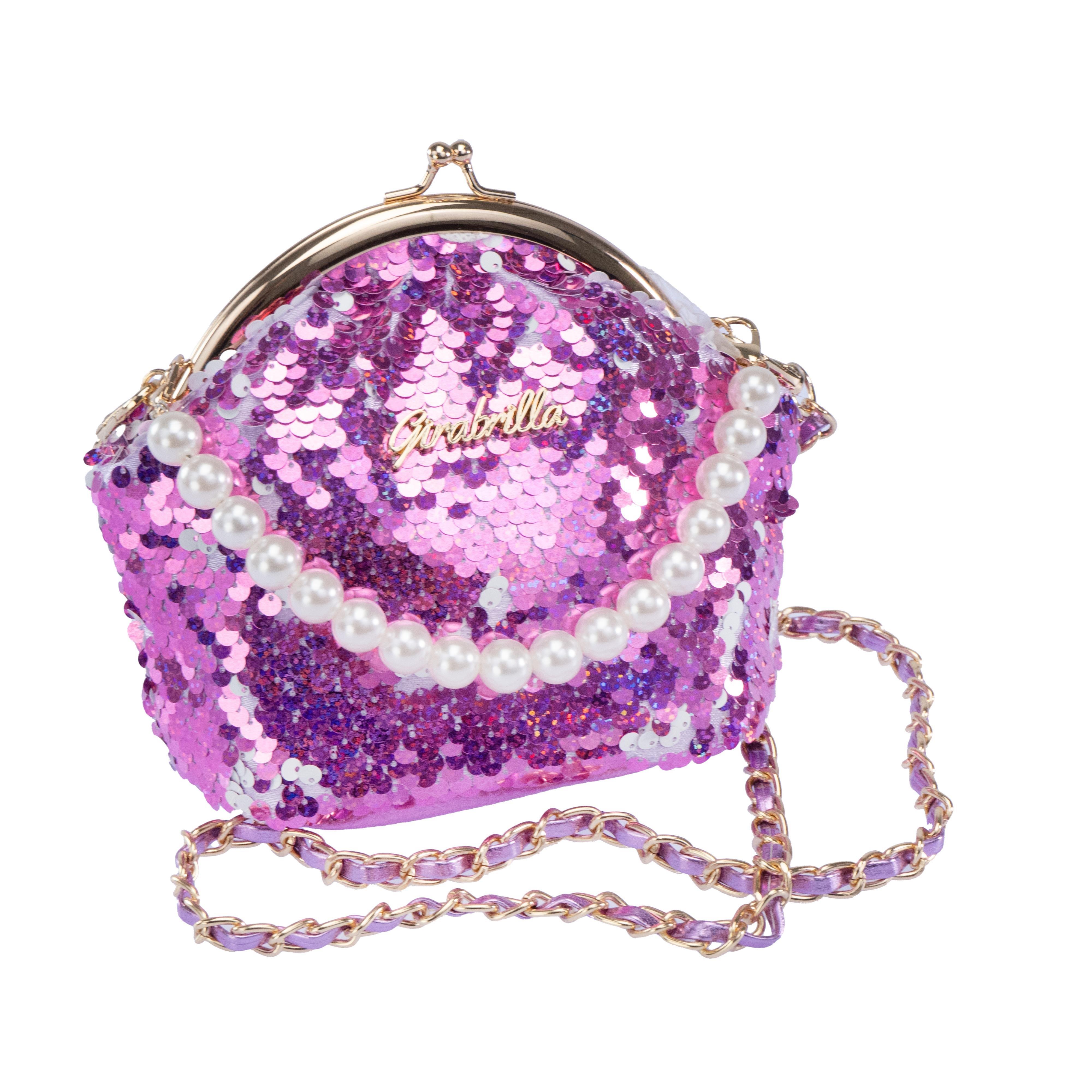 Her yaş için tersine çevrilebilir mor payetli omuz çantası: Zarif bir stil, ışıltılı ve tatlı bir görünüm.
