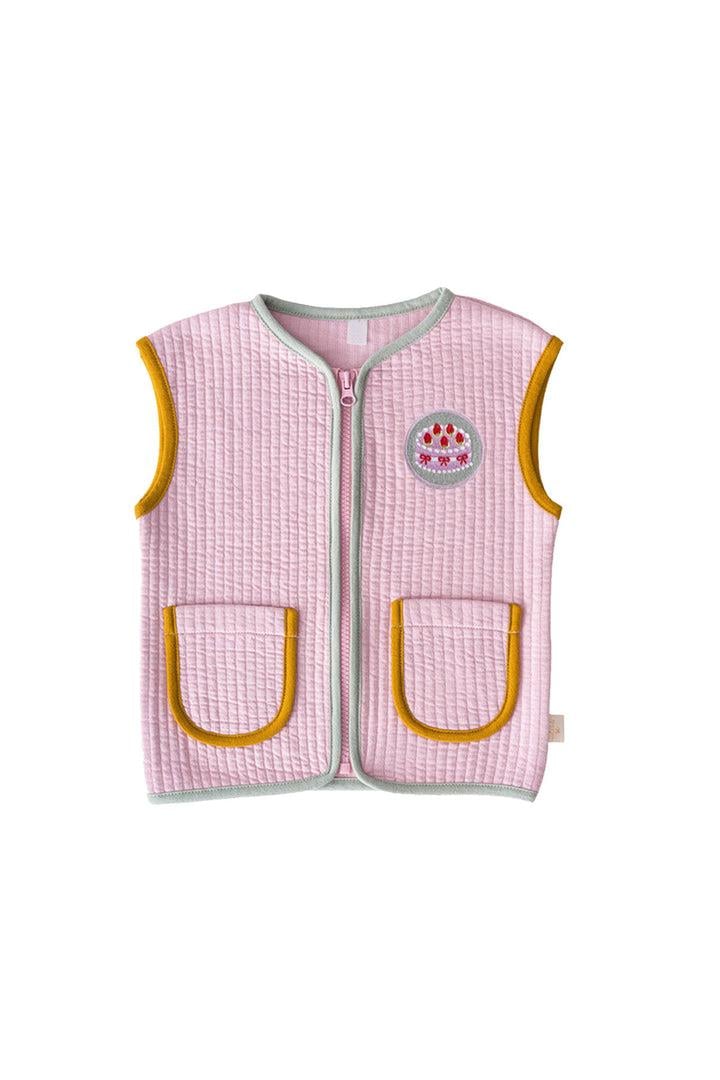 Sezonun renkli kontrast trendi Miela Kids'in ikonik kumaşlarıyla buluştu. Kol, fermuar ve cep detaylarında bulunan kontrast renklerdeki biye detayları klasik yelek anlayışına yeni bir boyut kazandırıyor. Mevsim geçişlerinde kalın giyinmek istemeyen miniklerin imdadına yetişen kapitone yelekler, yakasında bulunan nakış detayıyla daha tarz bir görünüme kavuştu. 100 % pamuk kumaş arasındaki elyaf dolgusu sayesinde sıcak tutar.