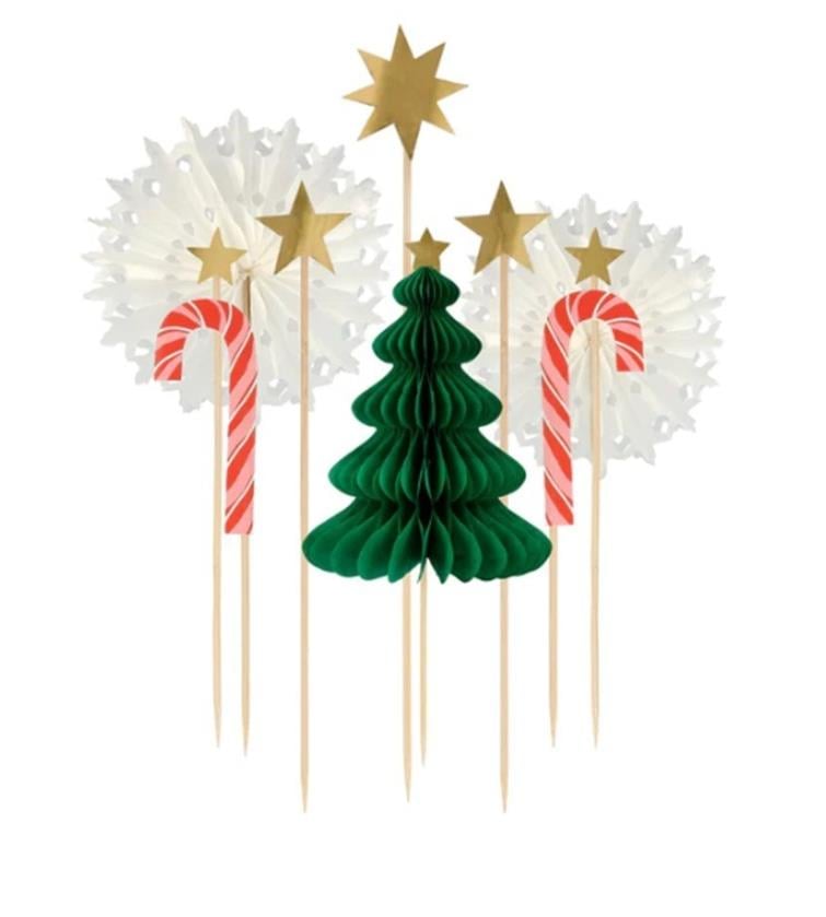 Meri Meri - Christmas Honeycomb Cake Topper Set - Petekli Yeni Yıl Pasta Süsü Seti - 10 parça
