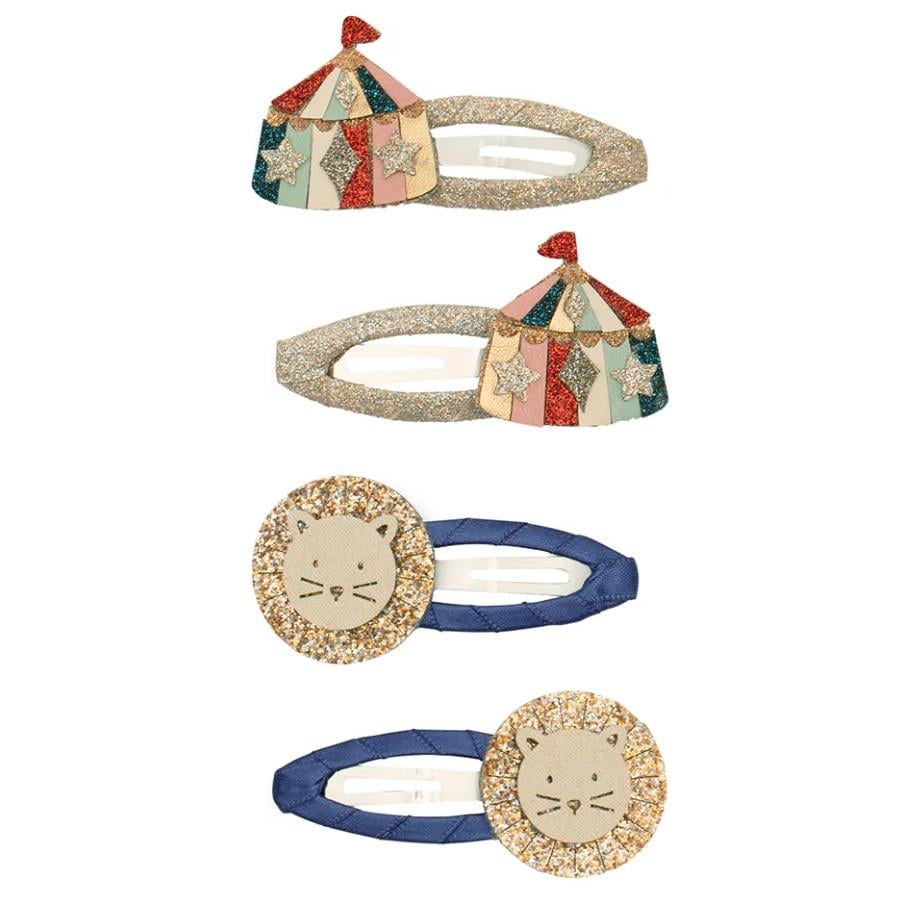 Mimi & Lula Circus Lion 4'lü Toka, büyüleyici renk ve dokularla özenle tasarlanmış sirk temalı aslan ve sirk çadırı figürleri sunar. Simli, metalik ve yumuşak keçe kumaşların karışımıyla göz alıcı bir görünüm yaratır.