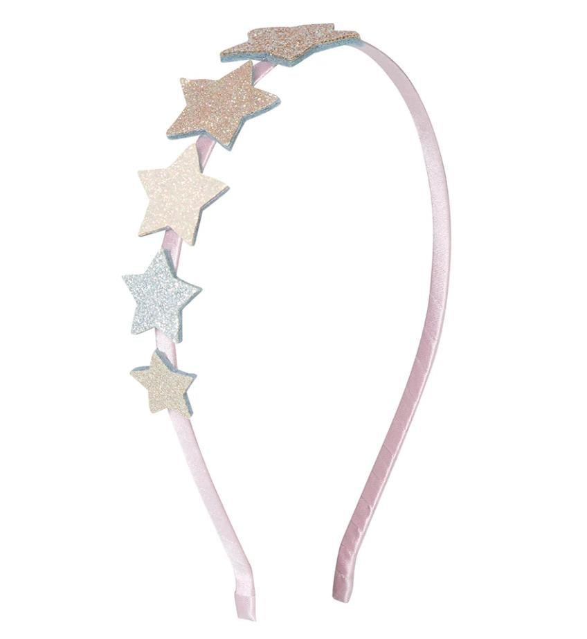 Mimi & Lula Falling Star Taç, kayan yıldız gibi parıldayan ışıltısıyla hem eğlenceli günlere hem de özel anlara mükemmel uyum sağlar. Hafif ve rahat tasarımı sayesinde saçları düzenli tutarken görünüşe neşe katan göksel bir parıltı ekler.