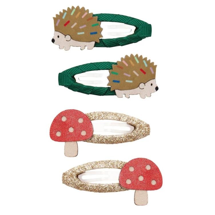 Mimi & Lula Harry Hedgehog 4'lü Toka, renkli dikenlere sahip sevimli kirpiler ve iki harika peri masalı mantarıyla saçlara eğlenceli ve neşeli bir dokunuş katıyor. Yumuşak süet ve simli kumaşlardan yapılmış bu tokalar, her saç stiline canlılık getirir.