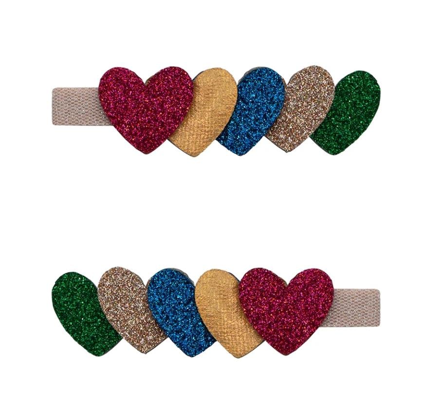 Mimi & Lula Jazzy Layered Heart 2'li Toka, renkli simli ve metalik kumaşlardan yapılmış katmanlı kalp figürleriyle her kıyafete eğlenceli ve parlak bir dokunuş katar. Bu şirin tokalar, stilinizi tamamlamak için ideal.