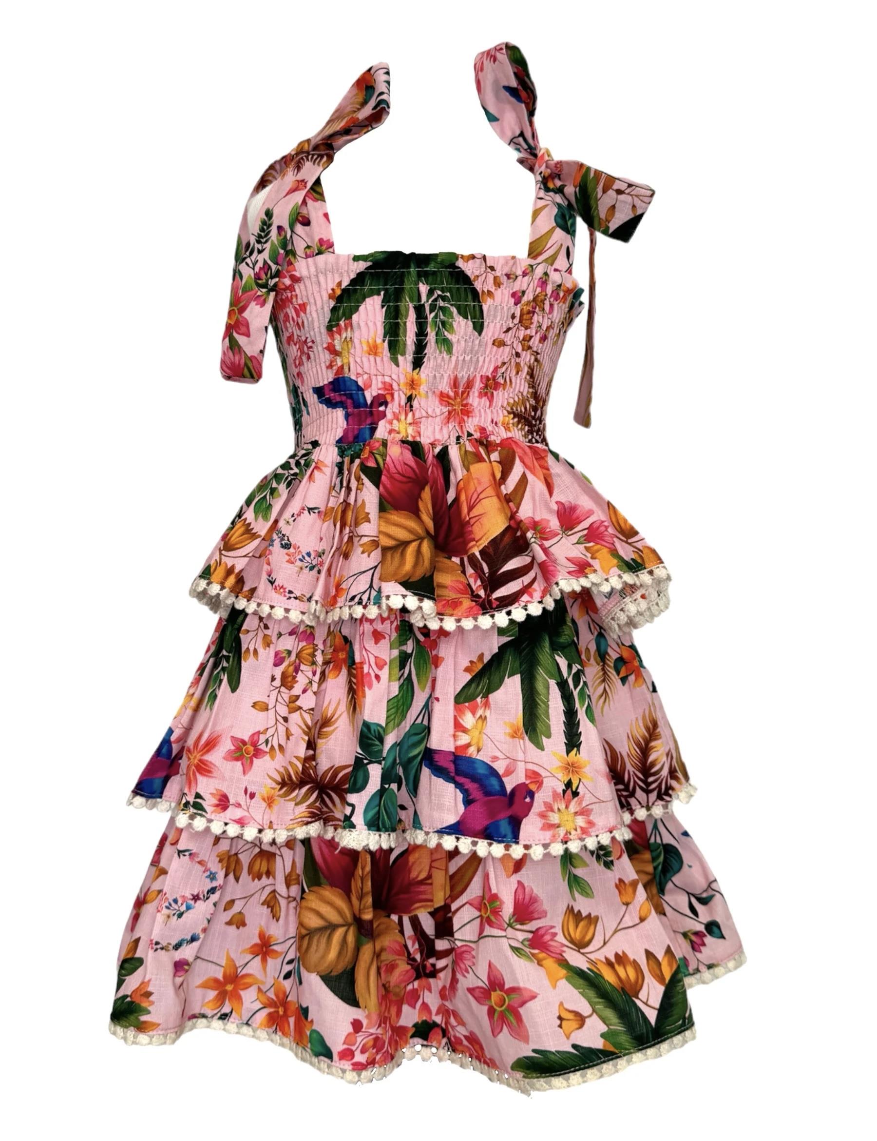 Le Petit Mico’ya özel tasarlanan çiçek deseni ile Yumuşacık %100 pamuk kumaştan üretilmiştir. Etekleri kat kat olup her katta fisto kullanılmıştır. Omuzları bağcıklarından ayarlanabilmektedir.